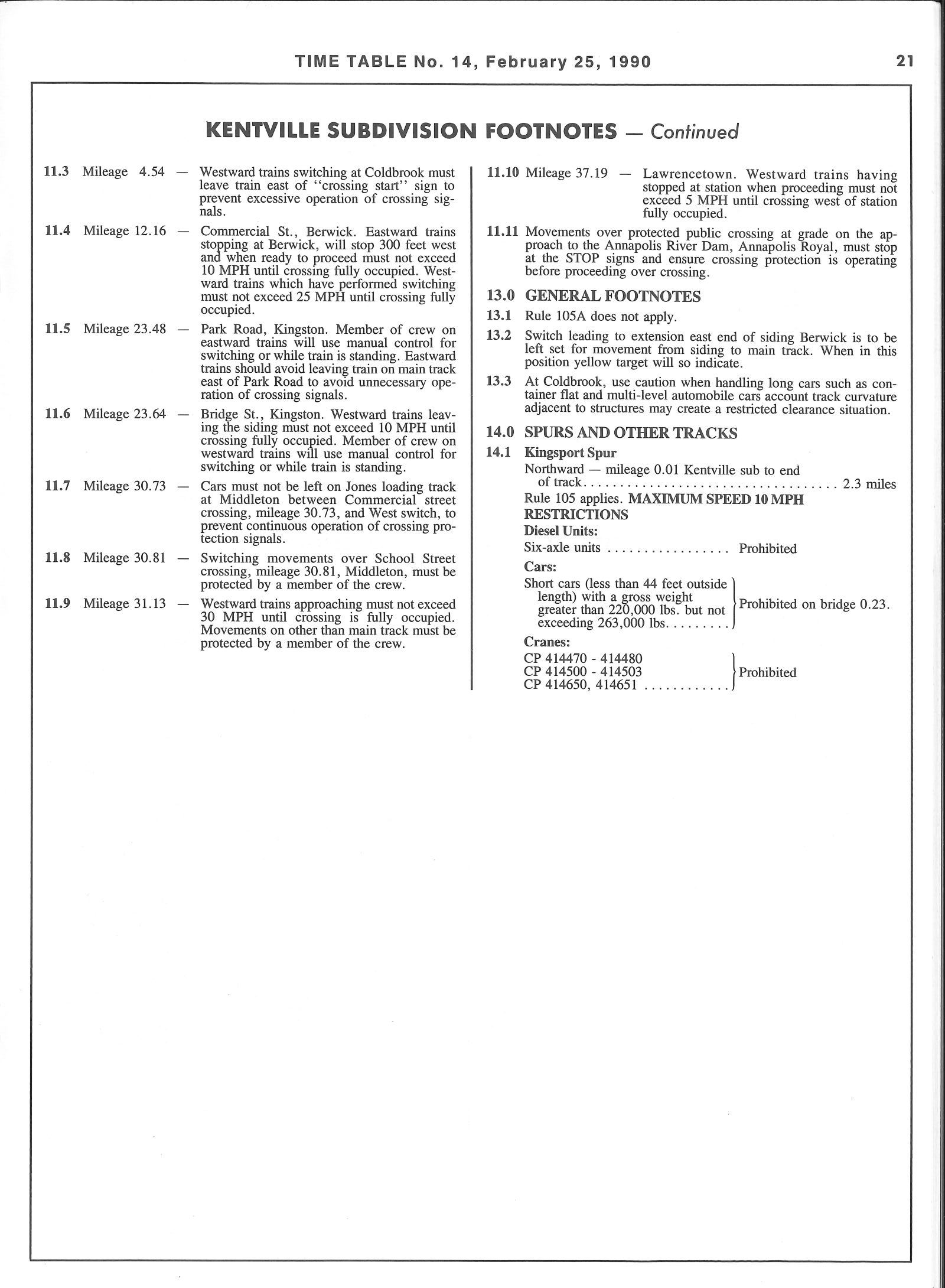 Canadian Atlantic Railway Employee Time Table Nr. 14 - Effective February 25, 1990 - page 21