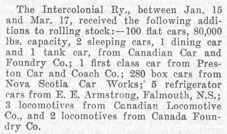 == Summary See link to whole article: "E. E. Armstrong of Falmouth Sells His Refridgerator Cars", Canadian Railway and Marine World, April 1913