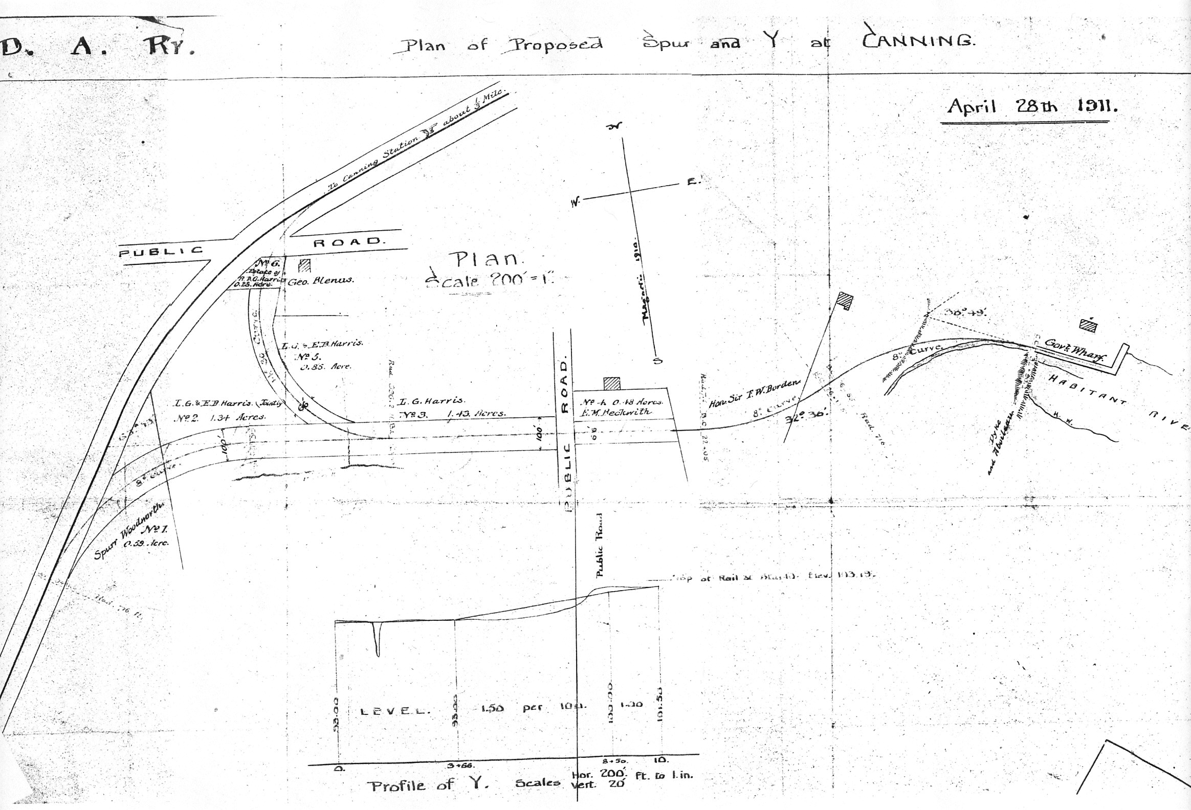 Map of the Canning Wye and Spur as designed, April 1911, with updates May 1911, from Library and Archives Canada, RG43, Vol 2787.