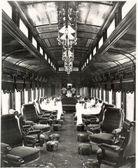 First Class passenger car interior according to the Bowlby description but this same photo is also on-line at the Kings County museum described as "The sumptuous interior of a dining car." and was also published in Cinders & Saltwater and was described as "Parlour Car c. 1900" on page 161.