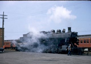 Original Kodachrome Slide, July 3, 1954, CPR 10 wheeler No. 1079, backing up at Yarmouth Station, Yarmouth after moving from engine servicing facilities.