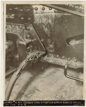 No. 351091 was built in 1926 and rebuilt in the Kentville shops in June of 1951. It was in service on the D.A.R. as a gypsum car until the arrival of the steel sided cars around 1963.