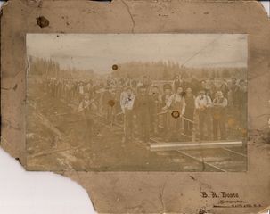 Building the Midland Railway, photo believe to taken in South Maitland, Nova Scotia. Date is unknown though it could be prior to 1900.