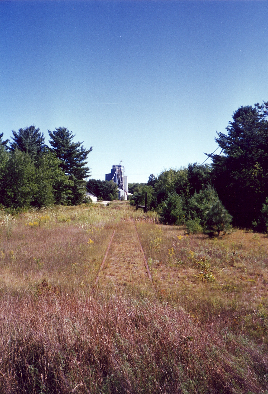This is the end of track at Steam Mill in the summer of 1993. The feed mill seen in the distance is now closed, and the area in the foreground is now occupied by a Cavendish processing facility.