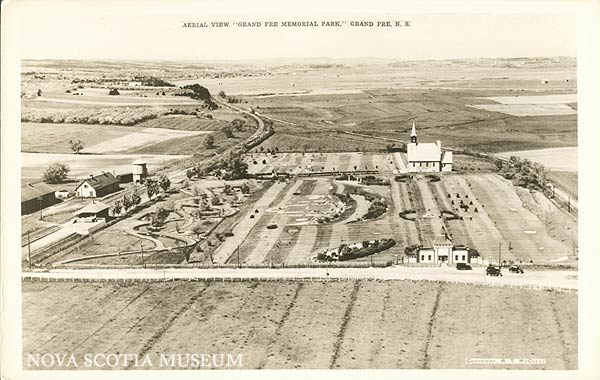 A postcard from the Nova Scotia Museum, History Collection, showing the DAR's Grand Pre Park and Grand Pre Station.