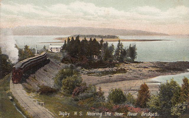 Colour postcard showing the Flying Bluenose entering the Bear River curve.