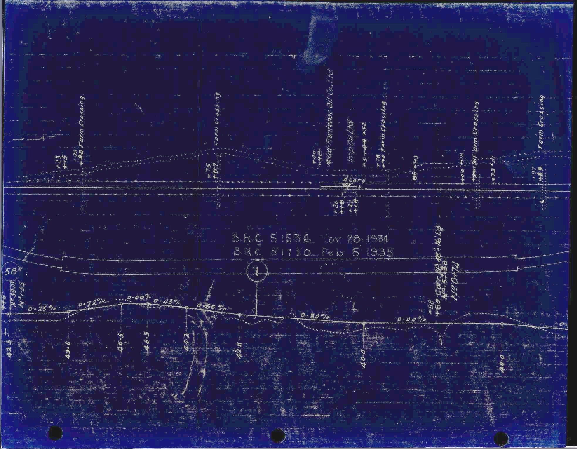 A clip of the March 18, 1918 C.P.R. track profile drawing showing Frontenac Oil. The orientation of the track is west to the left (looking from the south). The track schematics were known to have been updated until at least 1935 from notes made on other sections of this schematic.