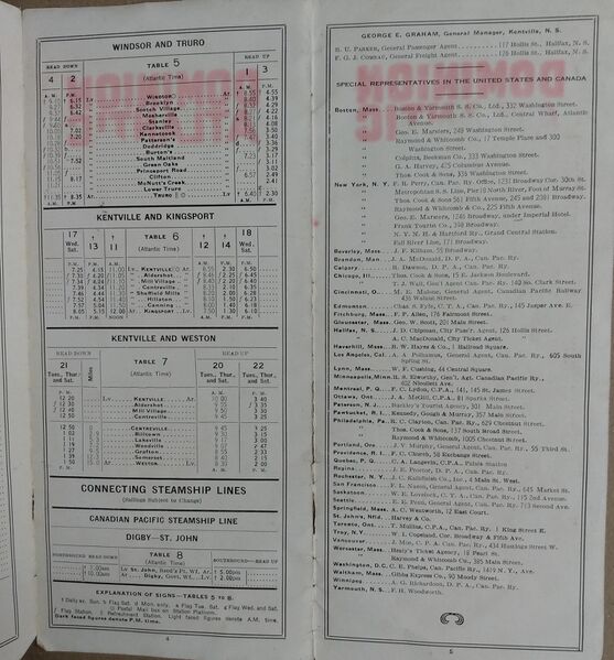 Pages 4 and 5 from DAR August 1, 1918 Time Table in Tony Kalkman Collection.