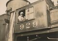 Locomotive No. 929 and engineer, probably at the Digby Water Tower, circa 1950.