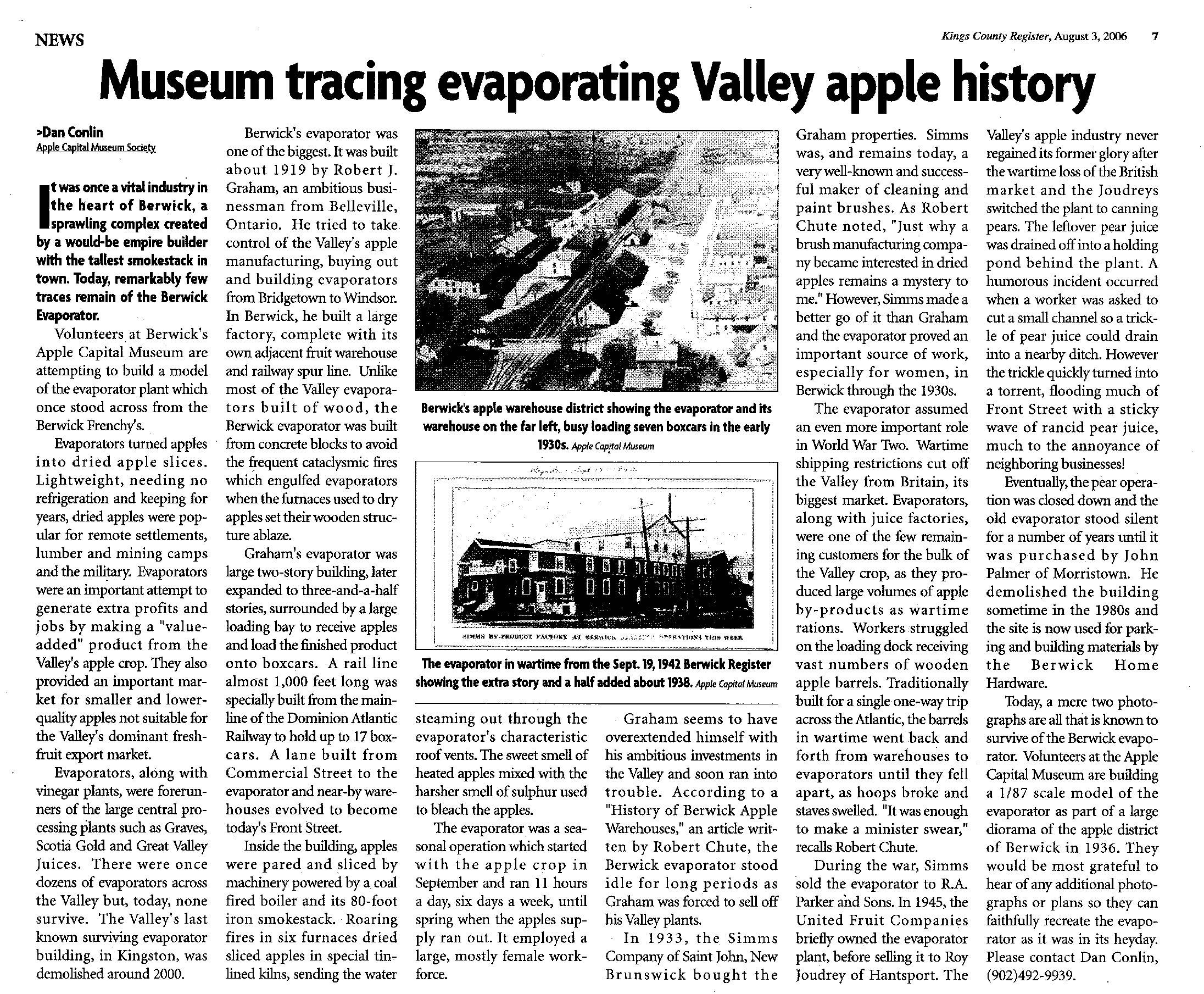 Kings County Register August 3, 2006 by Dan Conlin about the Berwick Evaporator