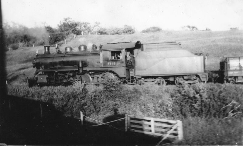 DAR Locomotive No. 999 with ballast train at the Round Hill Ballast Pit, July 1941[1] photographed by Charles McBride. A DAR herald can be just made out on the tender.