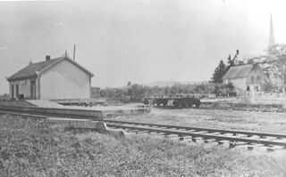 The Paradise Station and platform with the DAR mainline and the Paradise freight spur with an early DAR flatcar, circa 1900.