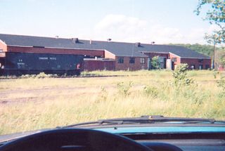 The Kentville Railyard and the Kentville Car Shop, photographed by Tom Tupper, 1990.