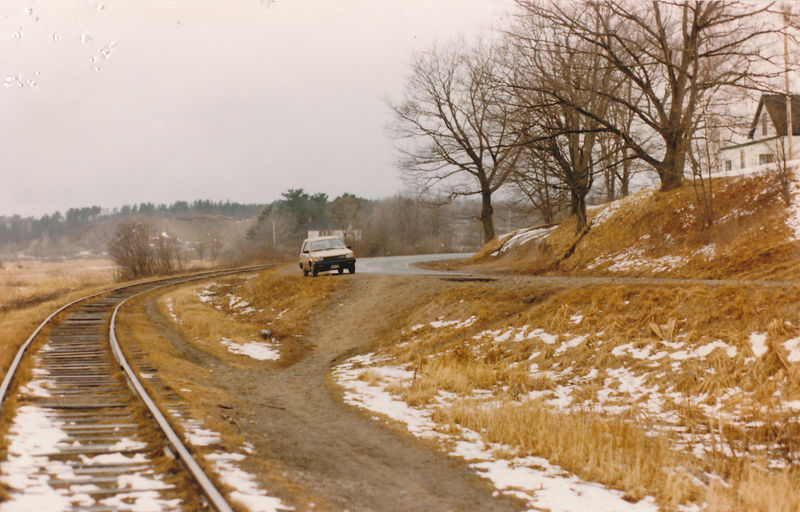 Tracks of the Cornwallis Valley Railway along Brooklyn Street nearing Kentville, photographed by Tom Tupper, Spring 1985.
