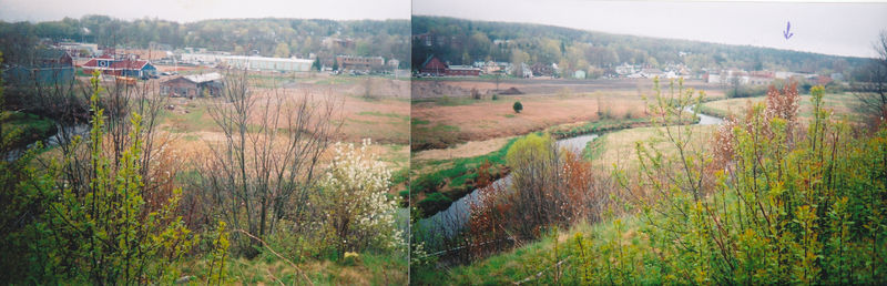 Kentville Railyard site looking south, photographed by Tom Tupper, May 10, 2006. From left to right are railway-related buildings: the British Canadian Fruit Association Kentville warehouse, the W.J. Burrell's Machine Shop and the Kentville Roundhouse.