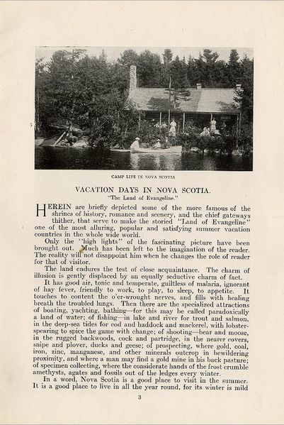 | current | 16:27, 19 September 2019 | 497 × 742 (148 KB) | Sarah Taylor (talk | contribs) | ''Courtesy of Nova Scotia Archives''<br> 'Canada's Ocean Playground'<br> The Tourism Industry in Nova Scotia, 1870-1970<br> Vacation Days in Nova Scotia<br> ''The Land of Evangeline,'' published by Dominion Atlantic Railway Steamship Lines.<br> Date: 1... |