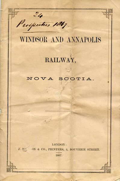 Windsor & Annapolis Railway 1867 Prospectus