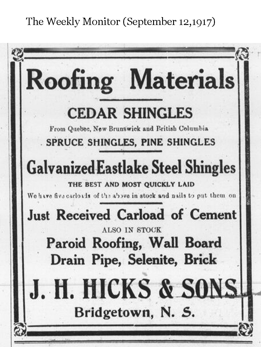 Advertisement for the many railway carloads of building supplies imported by J. H. Hicks & Sons to their Bridgetown construction headquarters.