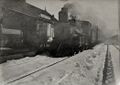 Kingsport in winter with cars at the Kingsport Fruit Company warehouse and the Mayflower Fruit Company warehouse along with combine No. 31 at end of train and Kingsport Station on right circa 1920.