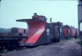 Snowplows at Kentville beside the Coaling Tower with boxcar No. 254016, snowplows No. 400609, No. 401032, No. 401038 and flanger No. 400568, July 21, 1967.
